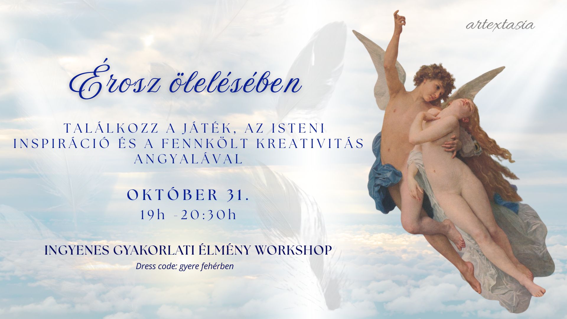 Meleg szívvel hívunk, hogy megtapasztald Érosz felemelő jelenlétét – a szárnyas Istent, aki a magasabb rendű erotikus vágy és az egység utáni vágyakozás megtestesítője.